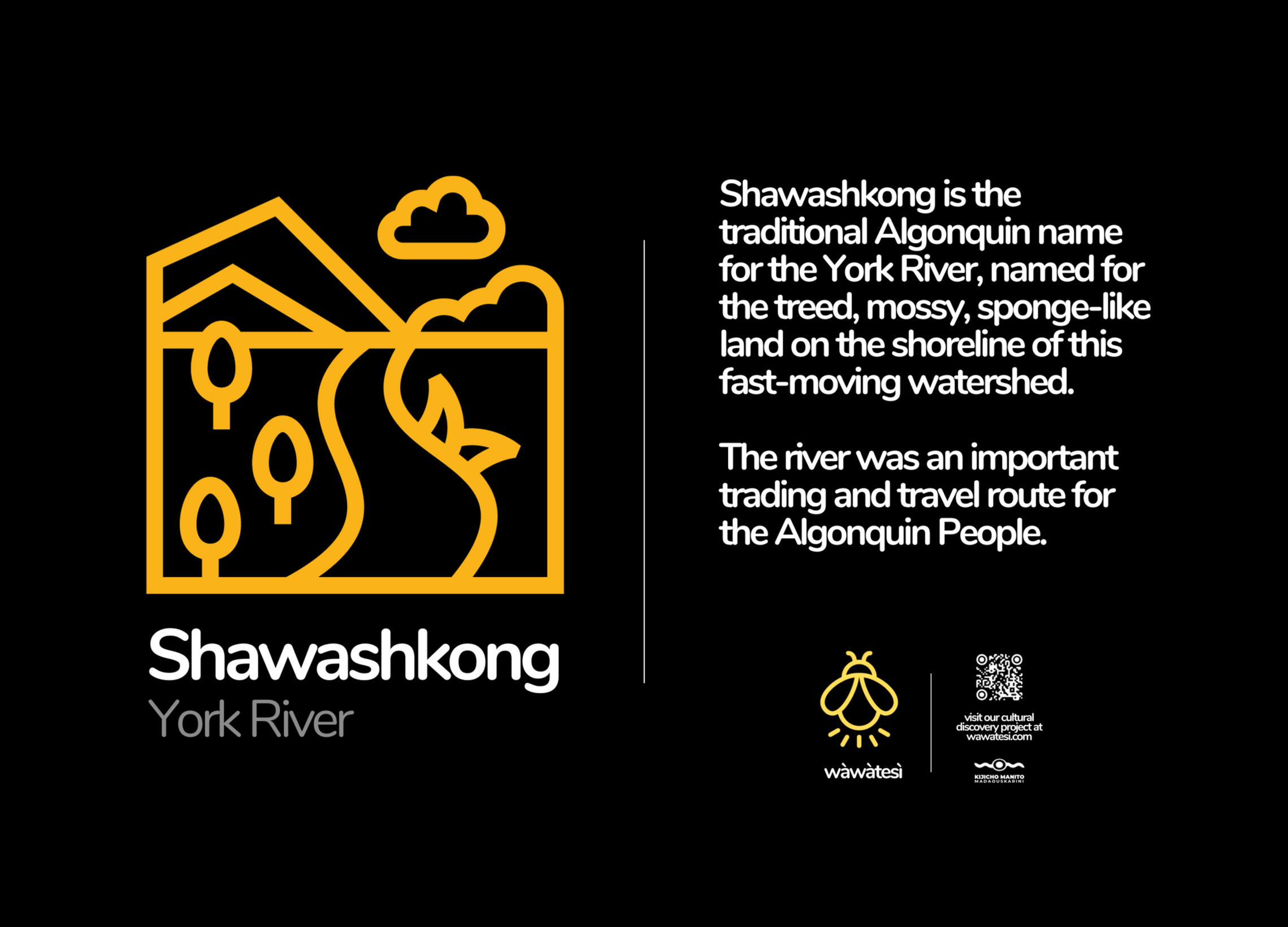 Wàwàtesì has developed a series of wayfinding signs to help locals & tourists navigate to the many interesting experiences along the trail.